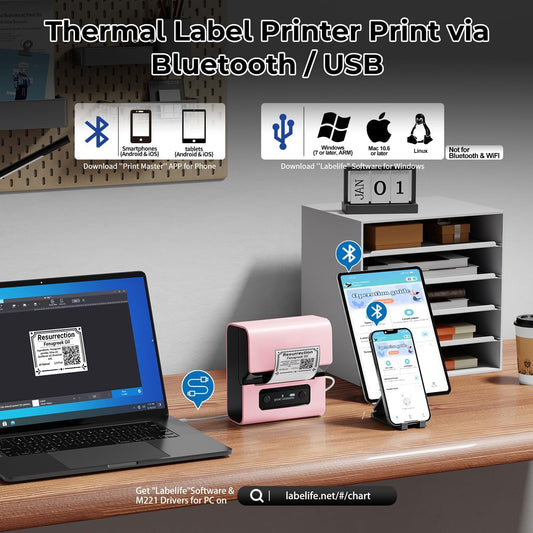 Goknu Label Maker- Pink M221 Upgrade Barcode Label Maker, Portable Bluetooth Thermal Inkless Label Printer for Small Business, Crafts, Clothing, Address, Mailing, Support Phone& PC