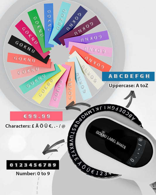 Goknu Etichettatrice per Goffratura 3D Stampante Portatile, Etichettatrice Etichette Adesive, E975 Embossing Etichettatrici cose utili per la casa ufficio scuola cucina fai da te (£ € Ä Ö Ü)