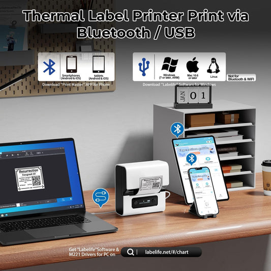 Goknu M221 Label Maker-Flagship's Advanced 3Inch Bluetooth Thermal Label Printer, Print Clearer & Sharper, for Address, Barcode, Ingredient,Crafts, Label Printer for Small Business, for Phone & PC