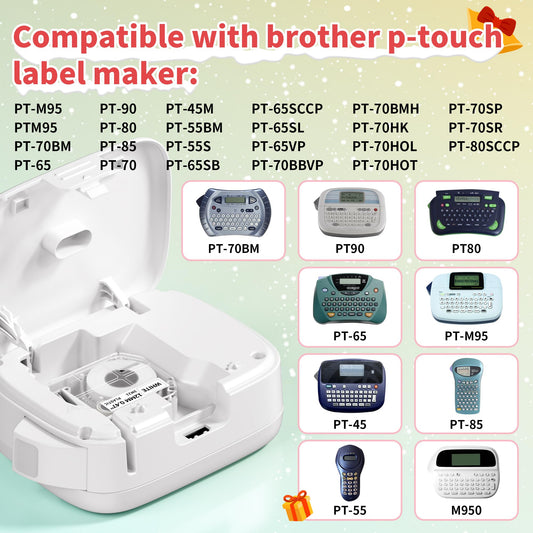 Goknu Nastro di ricambio per Brother P Touch M Tape MK221 MK 231, M960 Nastro a trasferimento termico compatibile con la stampante di etichette Brother PT-M95 PTM95, 12 mm x 4 m nero su bianco